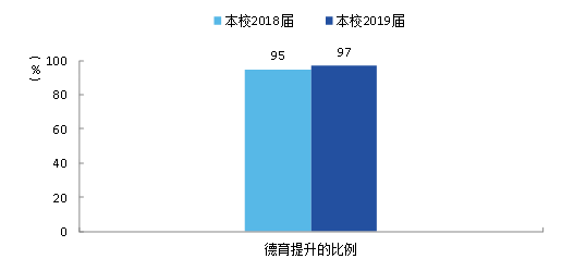 根据第三方机构调查数据显示,97%的2019届毕业生表示大学帮助自己在德育方面得到了明显提升,较2018届(95%)有所上升。其中,尤其是在“遵纪守法”、“积极努力、追求上进”、“诚实守信”方面得到提升较多。