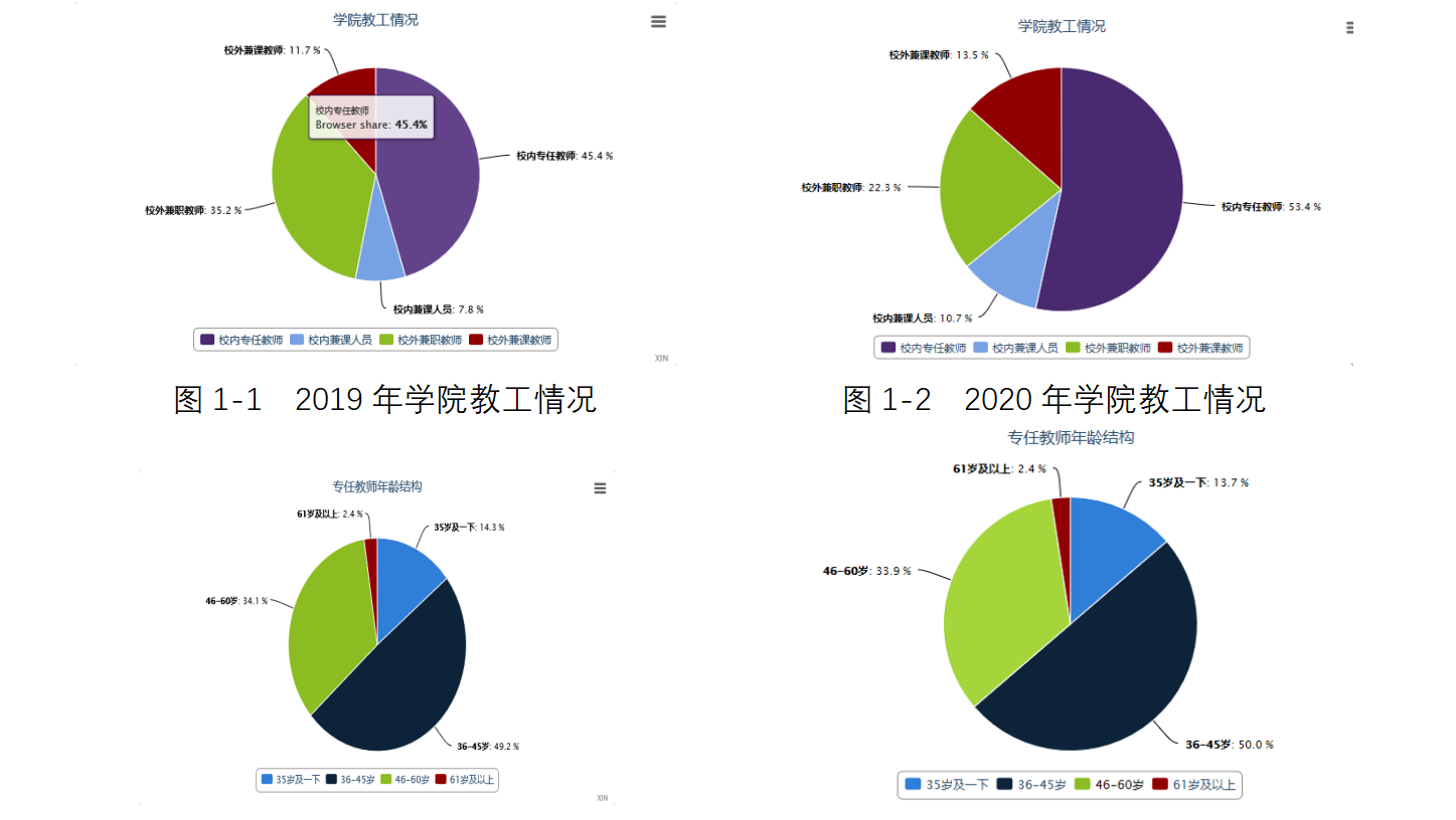 图1-3 2019年专任教师情况 图1-4 2020年专任教师情况