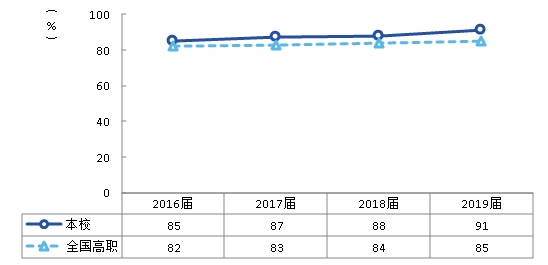 根据第三方调研数据显示,2019届毕业生的教学满意度为89%,近四年毕业生教学满意度整体呈上升趋势,且与全国高职平均水平的差距逐渐减小。