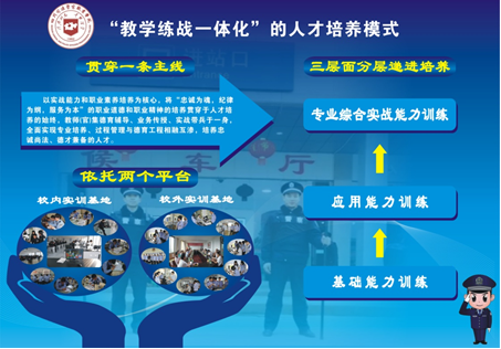 学院按照“贴紧需求建专业,依托行业强保障,立足实战练技能”的原则,找准专业定位,紧紧围绕法治国家建设和365bet线上娱乐_美好365app官方下载_皇冠365体育下载行政事业发展需要,按照“立足365bet线上娱乐_美好365app官方下载_皇冠365体育下载行政、面向政法系统、服务社会治理”的办学定位,注重开放建专业,“走出去、请进来”,虚心学习兄弟院校先进经验,全面开展需求调研,推行将课堂建立到现场“教学练战一体化”的人才培养模式,与用人单位、实习单位共同制订人才培养方案,搭建就业平台、创新办学模式、制订能力标准、开发课程教材、打造实训基地、组建师资队伍,实现信息资源的“互联互通”,设备资源的“共建共享”,人力资源的“互兼互聘”,形成了校监校所校局校企深度合作格局。