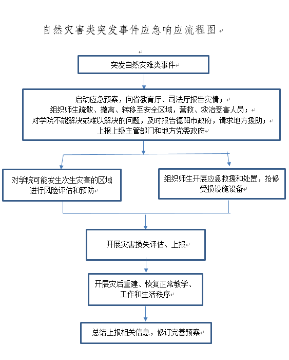 指自然灾害对学院的人员和财产造成一般损害,对学院的教学秩序产生一般影响的事件。出现下列情况之一的,为一般事件(Ⅳ级):